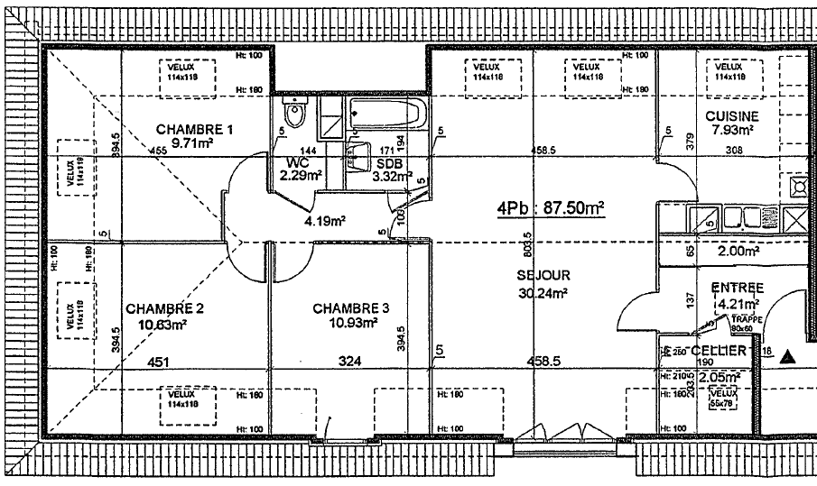 A louer appartement de T4 (87,50 m²) situé au troisième étage d’une résidence sécurisée de onze logements dans le centre-ville de GRAND-COURONNE, comprenant :